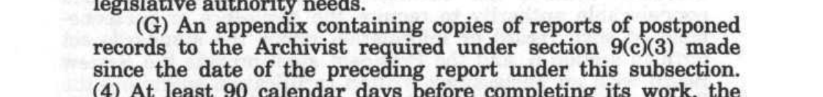 It would create a legal absurdity to interpret any section of the JFK Records Act to suggest that Congress could somehow impose lesser or no standards for postponement over sixty years after the assassination, when there were such high standards for postponement imposed in the 1990s. Congressional task forces and oversight committees should act now and investigate the status of the ARRB Final Determinations at the National Archives. There are living witnesses who can provide the facts and complete the record.