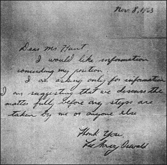Notably, a letter purporting to be from Oswald to a “Mr. Hunt,” dated Nov. 8, 1963, features the same signature as the Dec. 1, 1960, letter, which has never been authenticated and is considered by some a forgery: