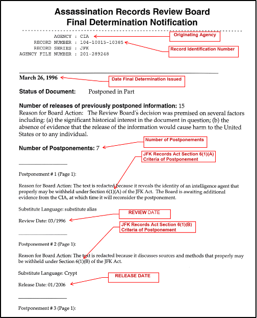 Since there still seems to be isolated pockets of doubt about whether the ARRB fulfilled its existential objective to implement an accountable and enforceable statutory process for the public disclosure of assassination records, it appears that additional evidence is required to establish the fact that the ARRB actually did issue Final Determinations for each record that was postponed from public disclosure and that all of the Final Determinations were physically transferred to NARA for archiving in a meticulous and lasting manner.