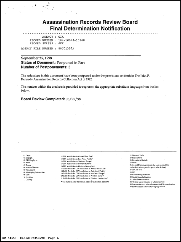 Once NARA accounts for the 14,079 Final Determination Notifications for these associated CIA records, the public will finally be able to know the status of these postponed records. The public will also be able to determine precisely which CIA records, whether in the JFK Collection at NARA or not, were never seen by the ARRB.