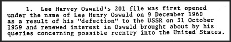 A few years later still, an undated CIA document entitled “Footnotes to Report on Pre-Assassination Docs in Oswald File” specifically labeled “inaccurate” Kalaris’ statement that the CIA had opened Oswald’s 201 file in response to his inquiries about coming home. An asterisk follows “inaccurate,” and at the bottom of the same page is written: