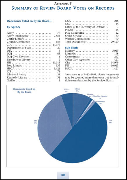 In regard to his internal email dated September 22, 1998, mentioned above in this section, Voth confirmed that the ARRB staff worked right until the very last day printing out Final Determination Notifications. As he and the other CIA Team members were responsible for processing ARRB Final Determinations on an ongoing basis from 1996 through September 1998, and had been attaching Final Determination Notifications to the records throughout their time at the ARRB. It was his best recollection that the last-minute print job at the end of September 1998 was completed in order to compile a single consolidated volume of paper copies of the Final Determination Notifications issued for the CIA Team records--which was to be transferred in hard copy to NARA. This is corroborated by the ARRB Final Report which shows that the Board voted on 14,079 CIA records (see below).